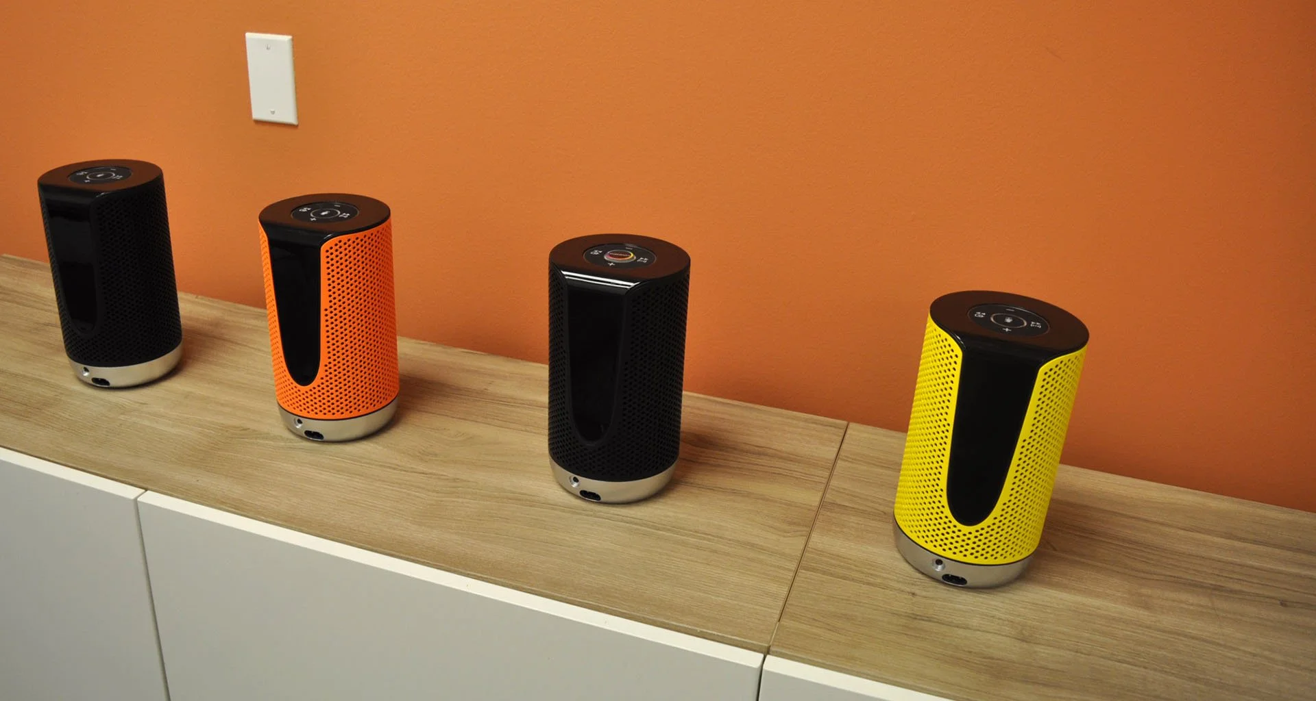 With a a unique star shaped transducer layout developed by Tandem Design, the Covestro wireless speaker evenly distributes audio in all directions.